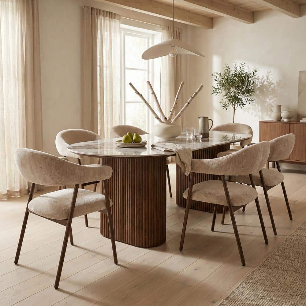 La Chaise Scandi Okura est conçue pour marier simplicité, confort et style intemporel. Elle dispose d’un dossier incurvé confortable et d’une assise douce qui invitent à la détente durant les repas les moments calmes ou les conversations informelles.