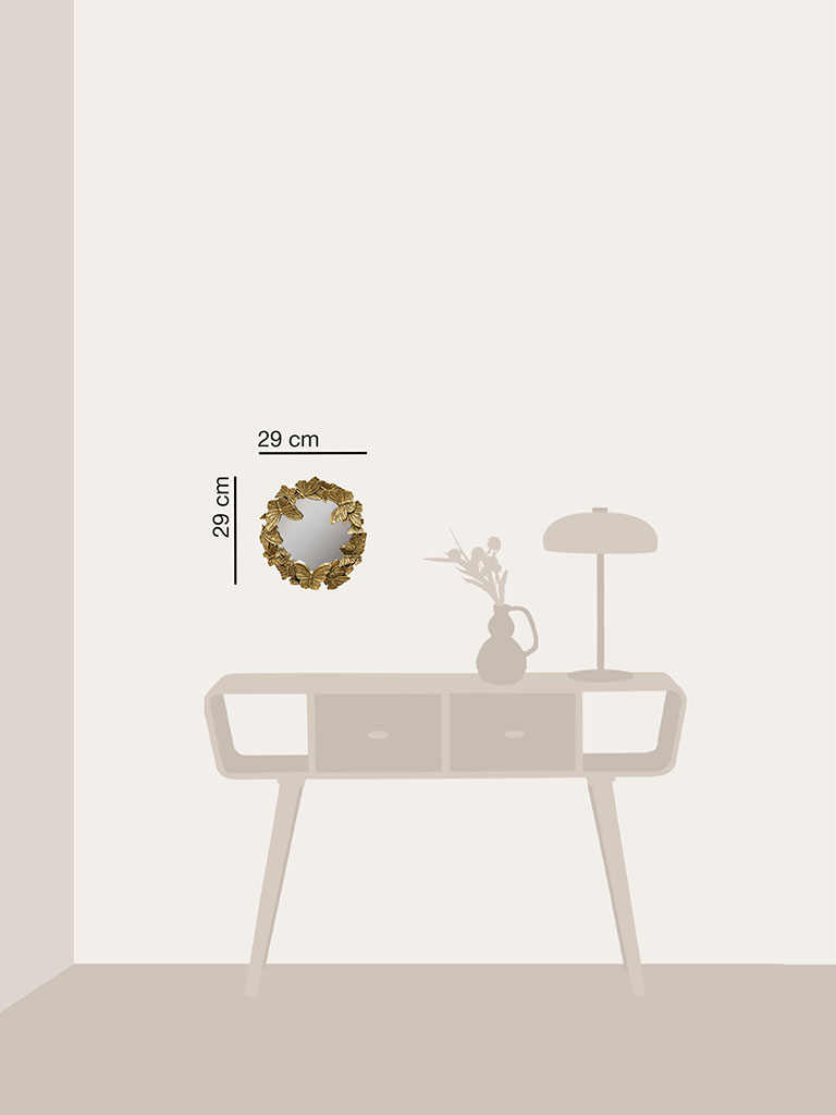 Miroir papillons dorés Chehoma. Il mesure 29 cm de diamètre,  vous pouvez aussi le mixer avec d’autres tailles et modèles pour une touche d’originalité ! Apportez une touche de poésie et d’élégance à votre intérieur avec ce magnifique miroir Papillons dorés signé Chehoma. D’un diamètre de 29 cm, il se distingue par son cadre délicatement orné de papillons dorés en métal, apportant légèreté et raffinement à votre décoration murale.